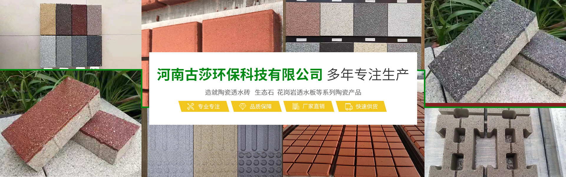 河南古莎環(huán)??萍加邢薰究傋溆诮煌屑~城市鄭州,是一家具備研發(fā)、生產(chǎn)、銷(xiāo)售能力為一體的綜合性現(xiàn)代化陶瓷企業(yè)。本公司專(zhuān)業(yè)生產(chǎn)經(jīng)營(yíng)生態(tài)陶瓷透水磚、生態(tài)鋪石、PC仿石材透水磚、PC仿石材景墻磚、普通透水磚、燒結(jié)磚等系列產(chǎn)品,完善的研發(fā)團(tuán)隊(duì),完善的生產(chǎn)流水線(xiàn)設(shè)備,打造完善的陶瓷企業(yè)。古莎環(huán)??萍棘F(xiàn)代化陶瓷企業(yè)是美化城市,改善生活環(huán)境質(zhì)量的生態(tài)環(huán)保產(chǎn)品,可廣泛應(yīng)用于公共建筑廣場(chǎng)、城市道路、公園、藝術(shù)景觀(guān)、廊道、房地產(chǎn)、別墅住宅小區(qū)、地鐵口、車(chē)站、高速公路服務(wù)區(qū)等。古莎環(huán)??萍荚谠刑沾善髽I(yè)基礎(chǔ)上,另拓展園林綠化、市政施工、瀝青包工包料施工、公路維修等業(yè)務(wù)板塊,專(zhuān)業(yè)培訓(xùn)了一些園林綠化、市政施工技術(shù)人員,并有多年的施工養(yǎng)護(hù)經(jīng)驗(yàn)以及建筑工程經(jīng)驗(yàn)。保證市政工程施工質(zhì)量以及園林綠化后期養(yǎng)護(hù)規(guī)范化、專(zhuān)業(yè)化。古莎環(huán)保科技所遵循的企業(yè)與品牌發(fā)展思路,是奠定在品質(zhì)與產(chǎn)品應(yīng)用之上。環(huán)保理念由我們共同倡導(dǎo),理性思考,以推進(jìn)步,感性溝通,以共建優(yōu)越。古莎環(huán)保科技與大家真誠(chéng)合作,攜手共進(jìn),為助力海綿城市建設(shè),建筑高品質(zhì)的綠色城市生活貢獻(xiàn)一份力量!